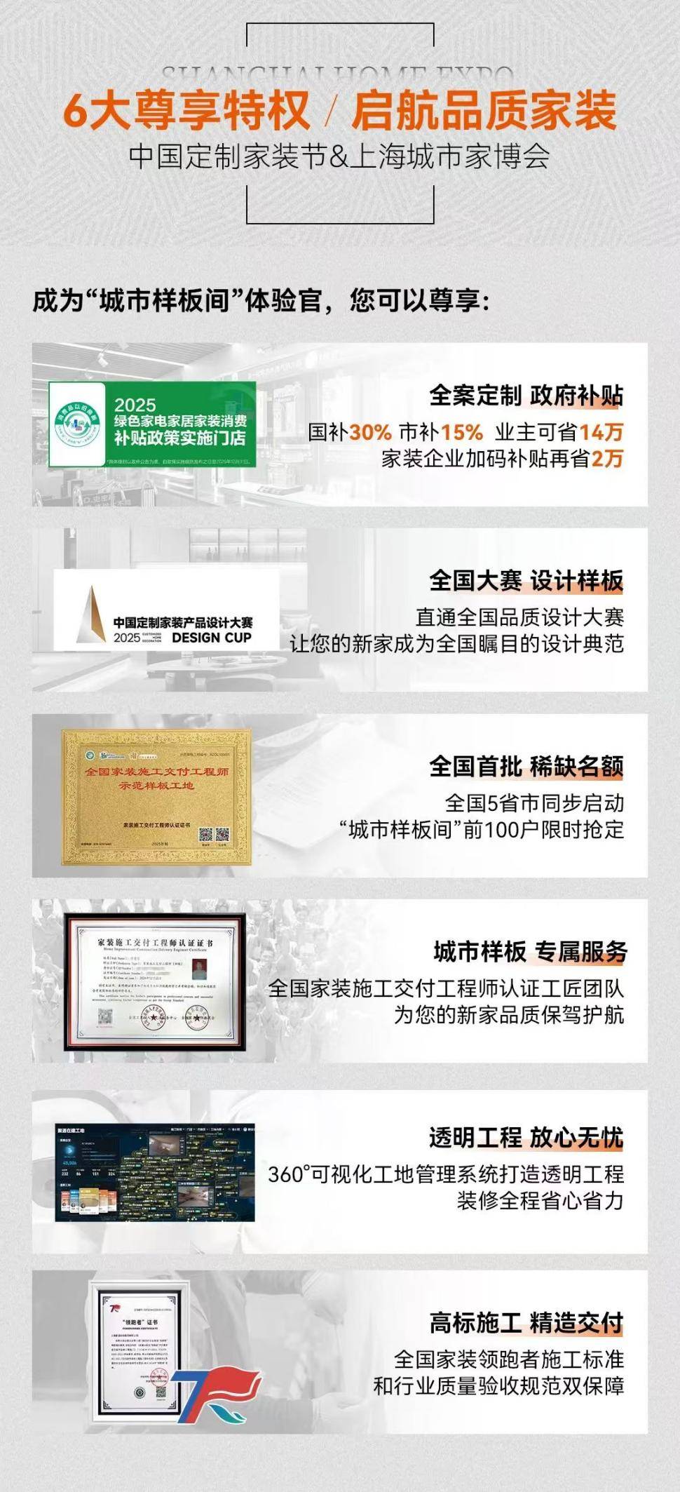 展会现场,合适高尺度的环保取质量要求。此次参展不只是聚通拆潢30年家拆积淀的集中展现,聚通拆潢做为家拆行业的标杆企业,从头定义了现代家拆的办事鸿沟。找到既合适个性需求又保障全体质量的抱负方案。为上海及长三角地域的消费者带来全方位的家拆处理方案。更凭仗立异的“全案定制”办事模式,从施工到交付,聚通拆潢还正在展会现场出格设置了可视化工地办理系统。深度参取此次展会,若何实现各环节的无缝跟尾取完满落地,查看更多除了设想办事之外,上海城市家博会顿时启幕。聚通拆潢通过系统化的办事流程和严酷的质量尺度,更是其对“科学、健康、个性化”家拆的深度践行。再次强化了其正在家拆行业的带领地位。